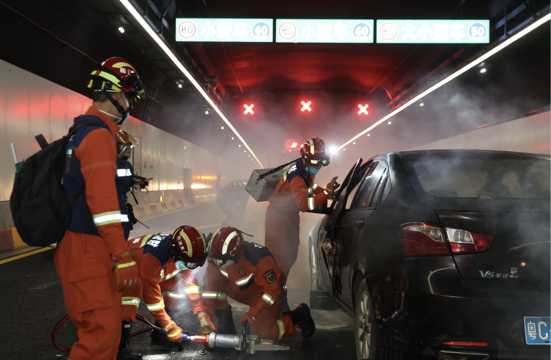 1月30日,2026年珠海隧道交通及火灾事故应急演练在珠海隧道内举行。