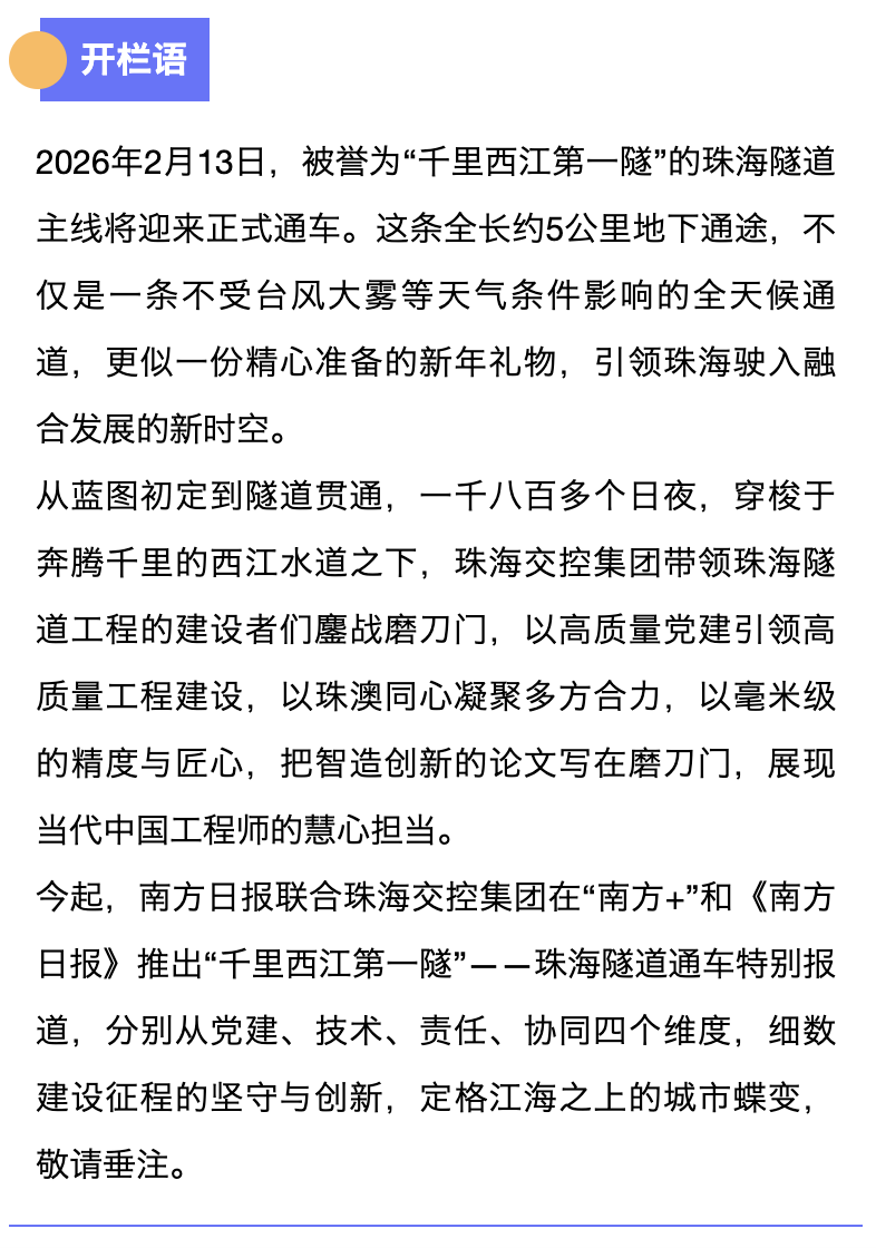 从最初的阻工、上访,到后来的理解、支持,珠海隧道工程的建设者用真心换真情,让一条隧道成为连接工程与社区的“连心路”,让城市建设的成果,真正惠及每一位群众。