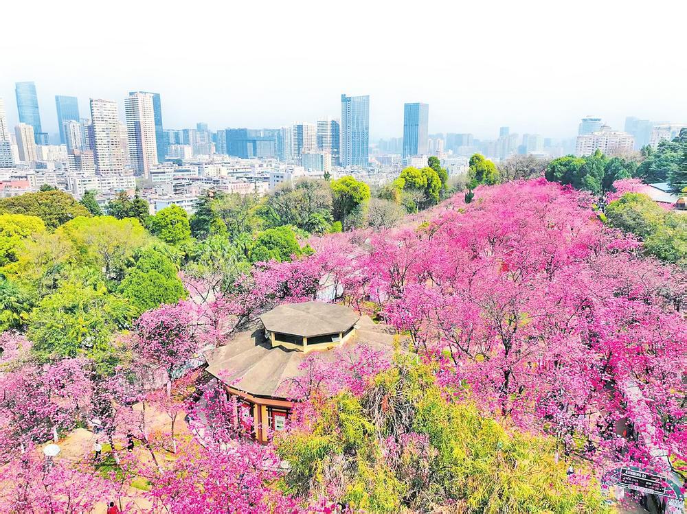 圆通山粉红色花海 本报记者 龙宇丹 摄